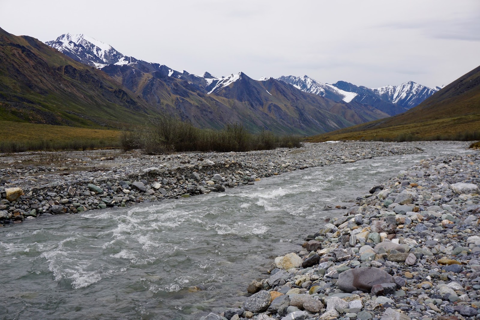We made it to our goal of the last confluence at 1:45PM and found a great flat, open, dry campsite. We set up our tents in the bear fence and our food tarp a little ways away. We ate lunch then half of us settled for a nap while Matt, Krista, and Matthew scouted out the area. Rain came in fiercely for the afternoon until dinner time. We all settled into the cooking shelter for dinner and a wild game of yahtzee while the showers came and went. A small group of caribou moved upriver towards us but decided to go up the west branch to avoid us at the mouth of the east. Off to bed as more rain came in.